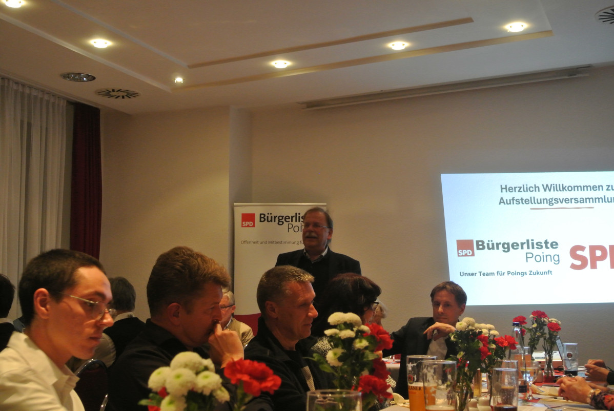 Am 24.10.2025 hat die SPD Bürgerliste Poing Reinhard Tonollo mit 100 % Zustimmung zum Bürgermeisterkandidaten für die Kommunalwahl am 08.03.2026 nominiert.