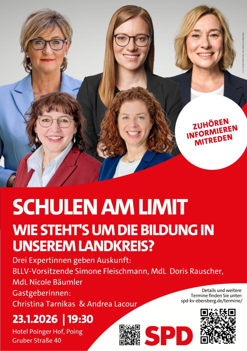 Die Gastgeberinnen Christina Tarnikas und Andrea Lacour laden herzlich ein zu einer Veranstaltung der Poinger SPD zum Thema "Schulen am Limit".